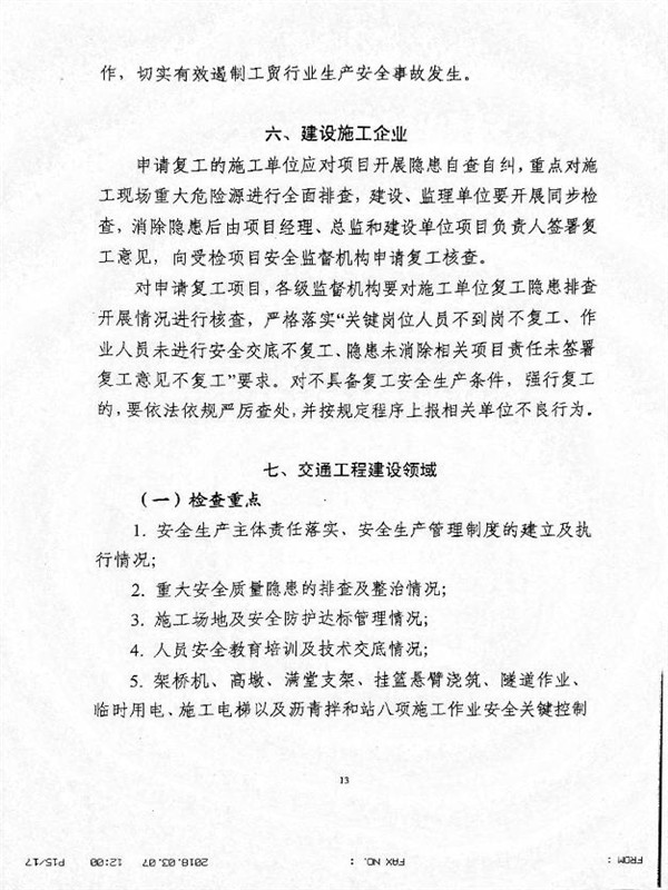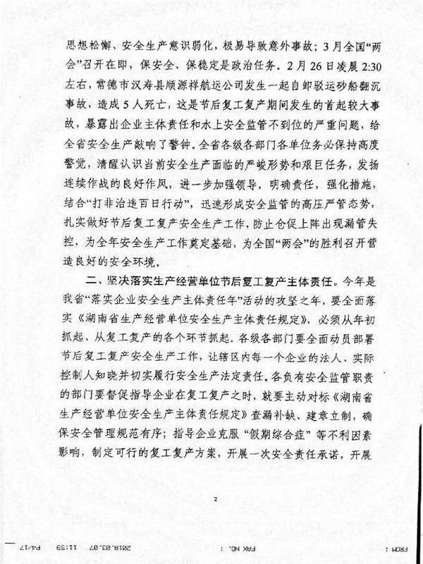 株洲市公路管理局转发《湖南省安全生产委员会办公室关于加强节后复工复产安全生产工作的通知》的通知